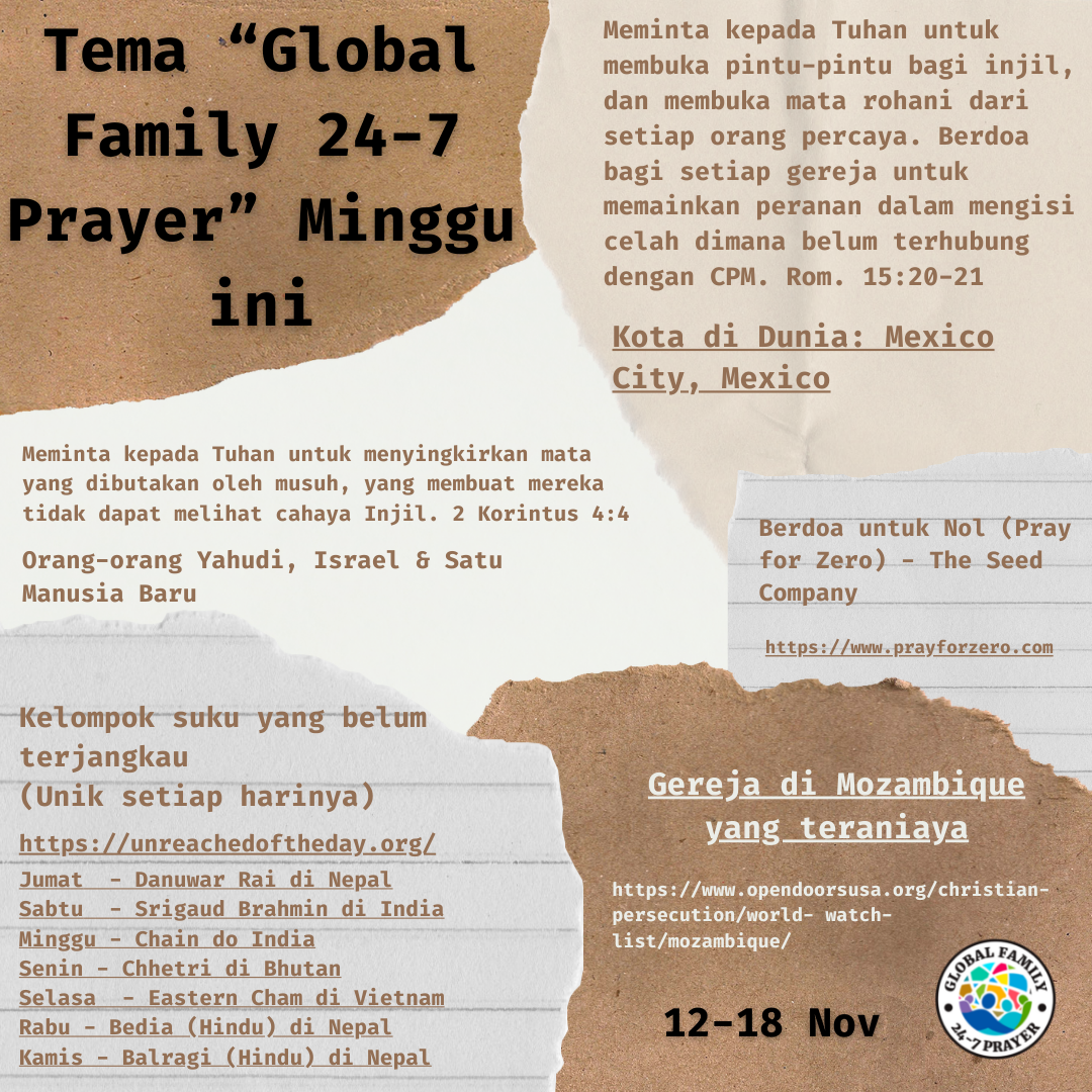 Global Family 24-7 runs under the auspices of International Prayer Connect - a 501(c)(3) non-profit organization and accepts gifts subject to donor designations.